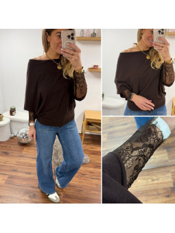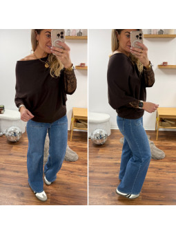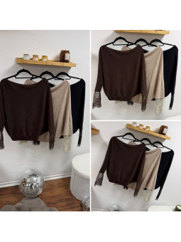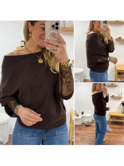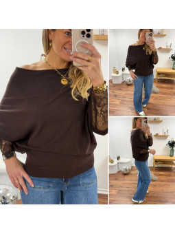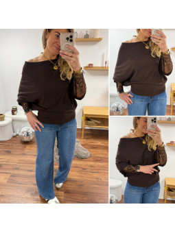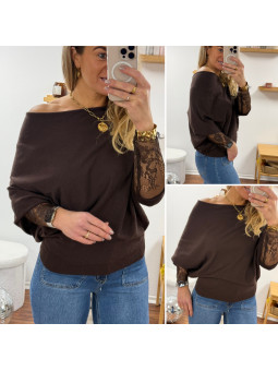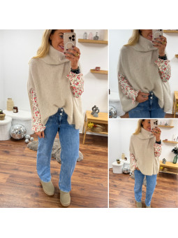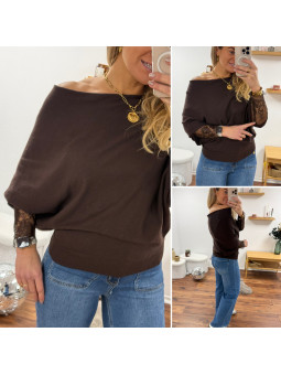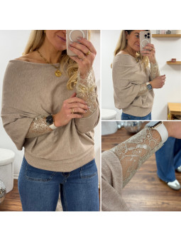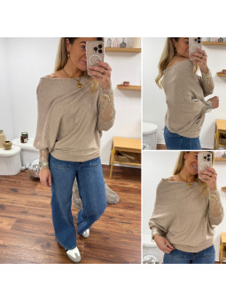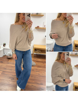 Pull fin beige manches chauve souris et encolure asymétrique...