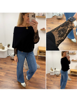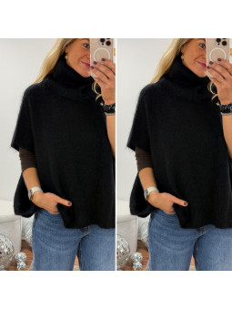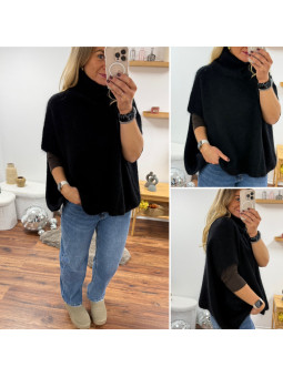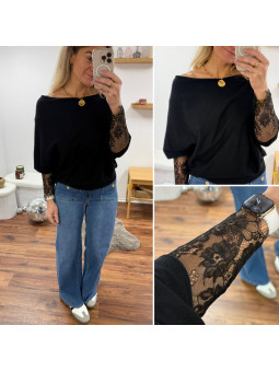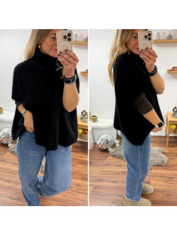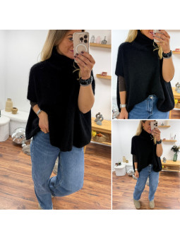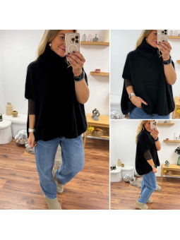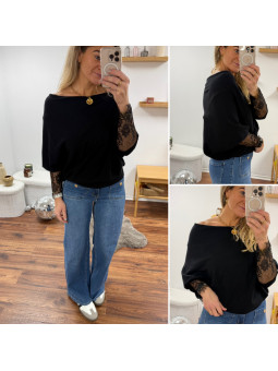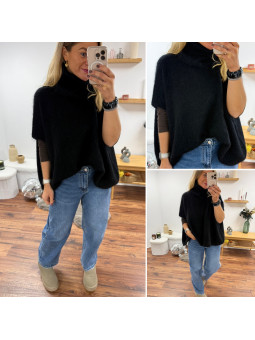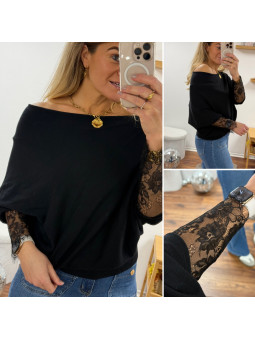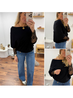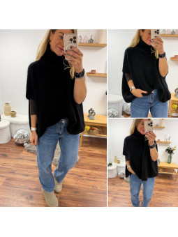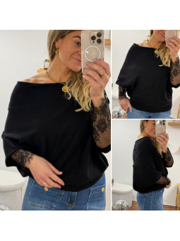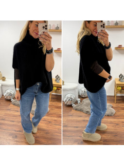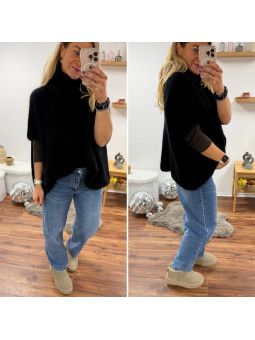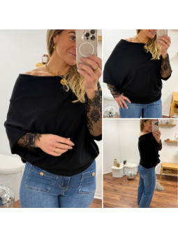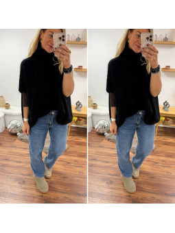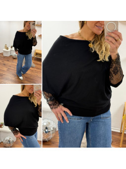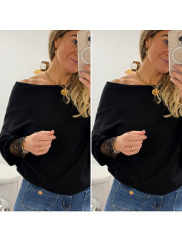 Pull fin noir manches chauve souris et encolure asymétrique...