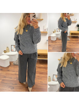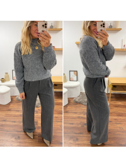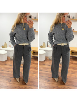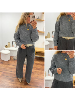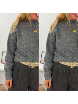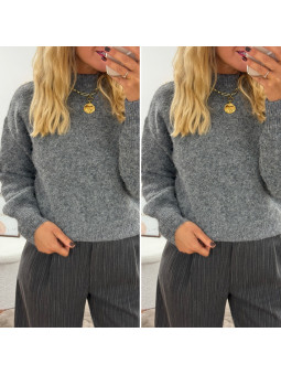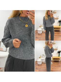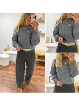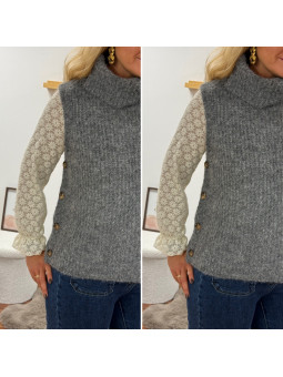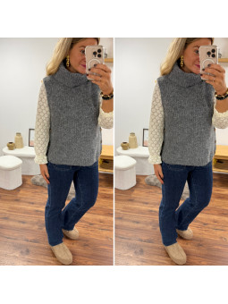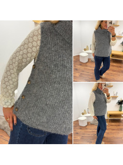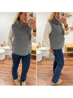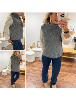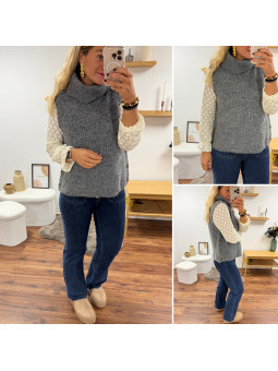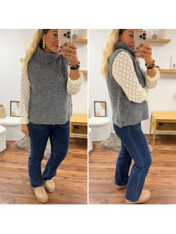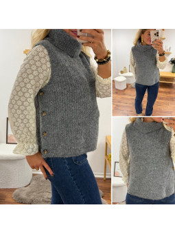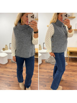 Pull col roulé sans manches gris avec boutons sur les côtés...