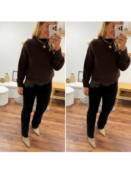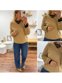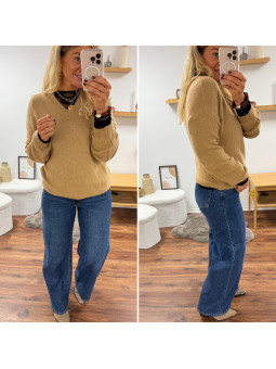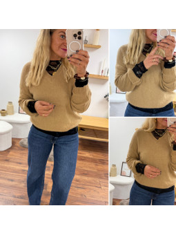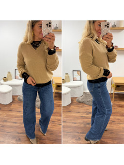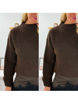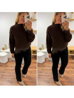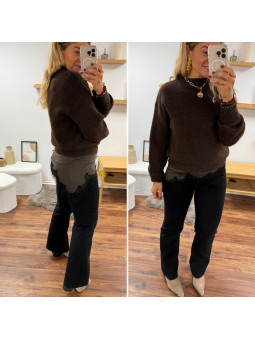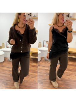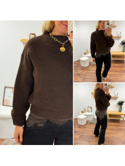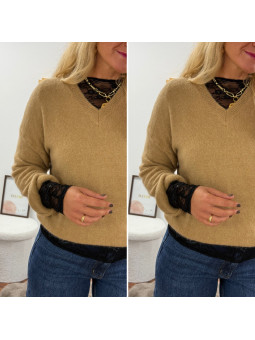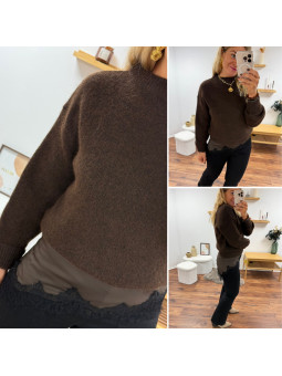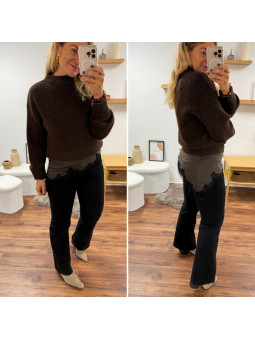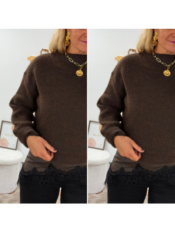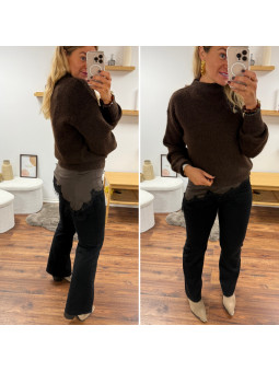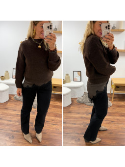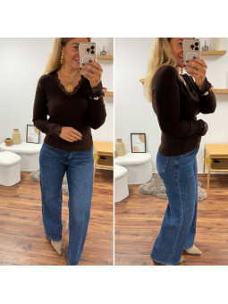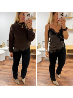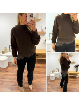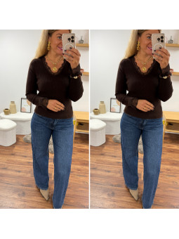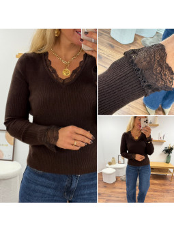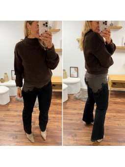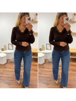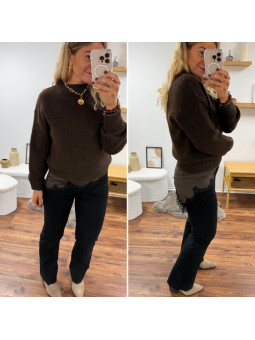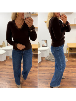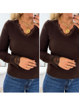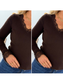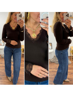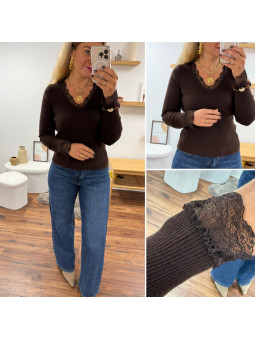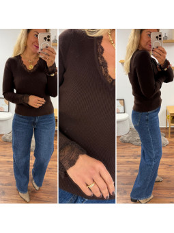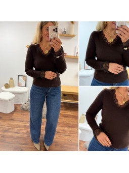 Pull moulant chocolat à col V avec dentelle Cet article en TU...