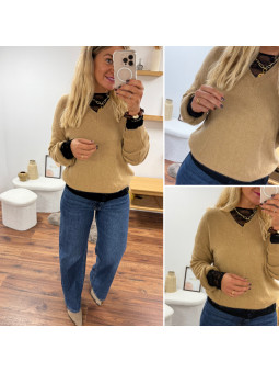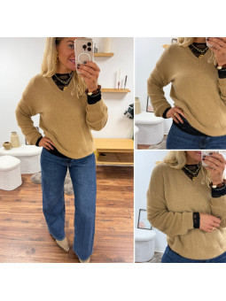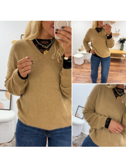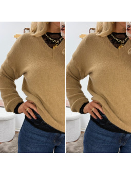 Pull col V en alpaga camel Cet article en TU convient du 36 au...