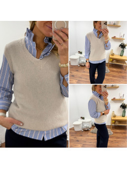 Pull en alpaga sans manches col V beige Cet article en TU...