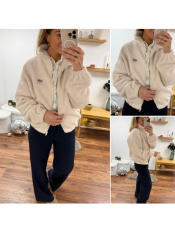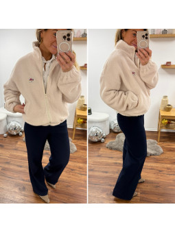 Veste polaire à bouclettes beige avec zip et écusson la vie...