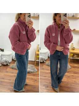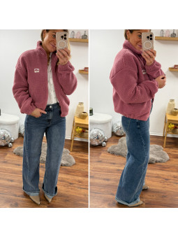 Veste polaire à bouclettes rose avec zip et écusson la vie est...