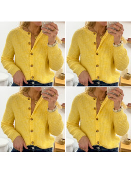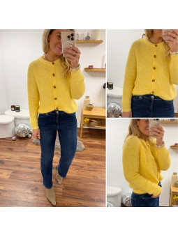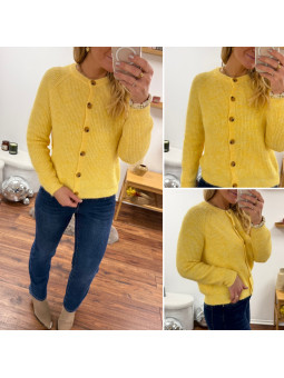 Gilet en maille jaune avec boutons camels Le SM équivaut au...