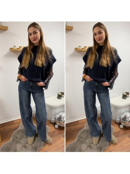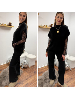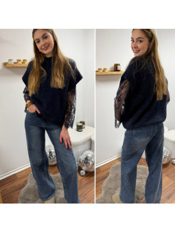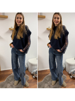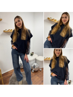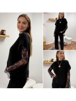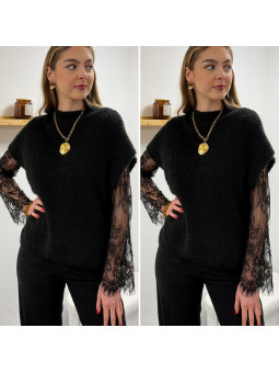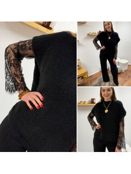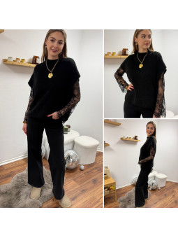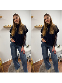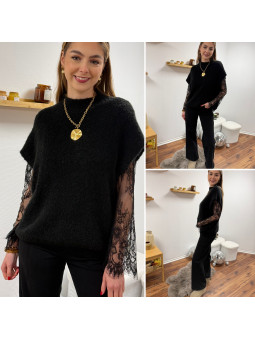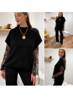 Pull sans manches noir avec manches en dentelle intégrées Cet...