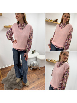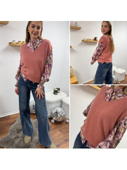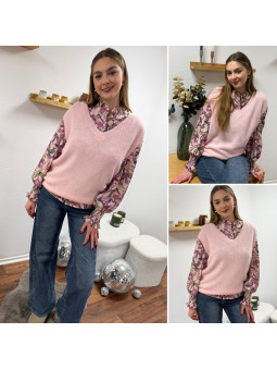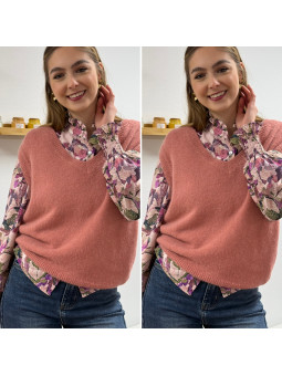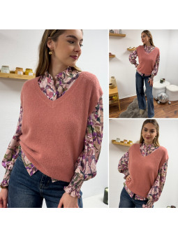 Pull en alpaga sans manches col V vieux rose Cet article en...