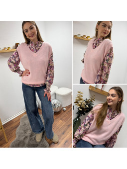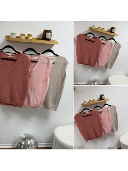 Pull en alpaga sans manches col V rose pâle Cet article en TU...