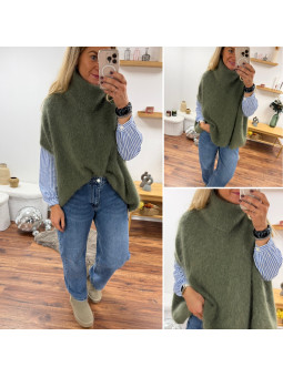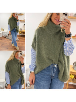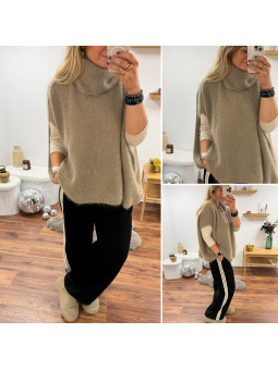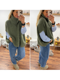 Pull sans manches en alpaga col V rose fuchsia flashy Cet...