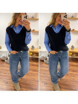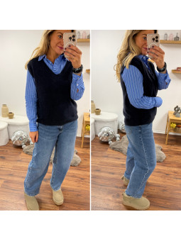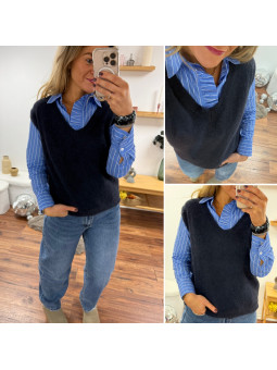 Pull sans manches en alpaga col V bleu marine Cet article en...