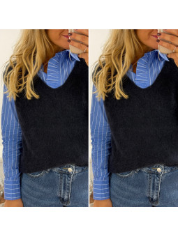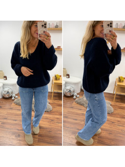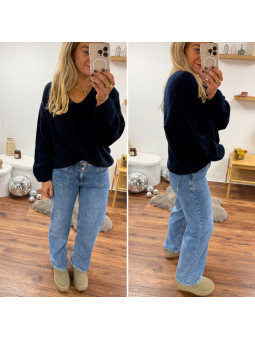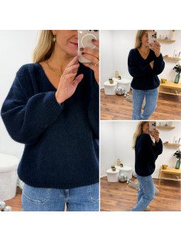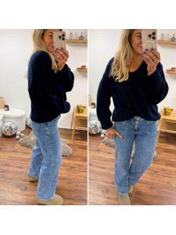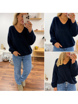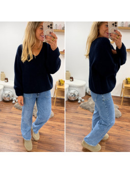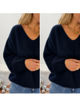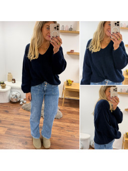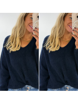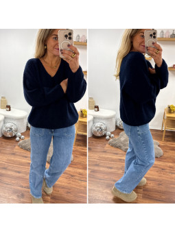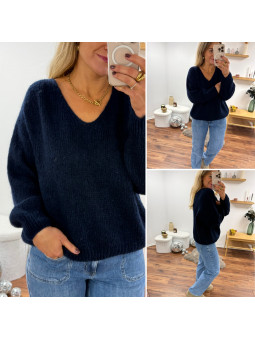 Pull bleu marine col V en mohair Cet article en TU convient...
