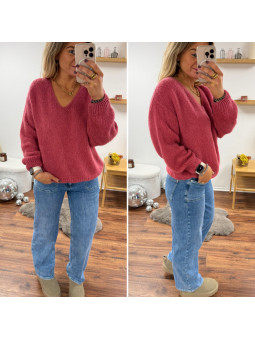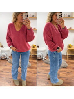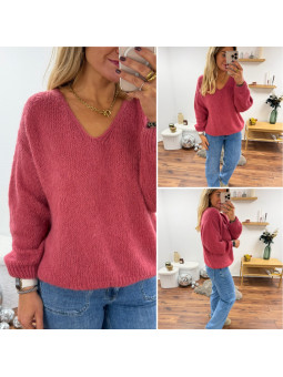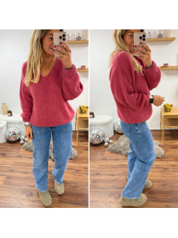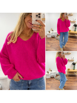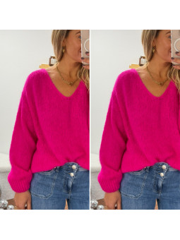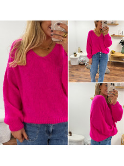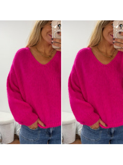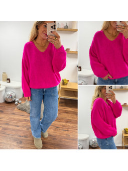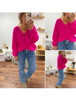 Pull rose fuchsia flashy col V en mohair Cet article en TU...