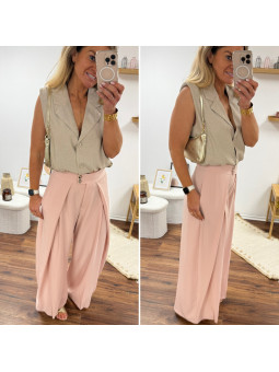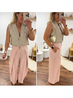 Pantalon fluide en lin couleur taupe avec boutons marbrés à la...