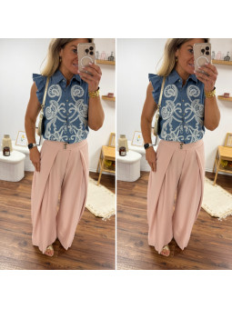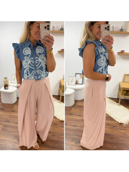 Jean wide leg bleu clair avec gros revers en bas Disponible du...