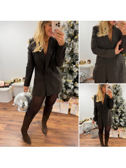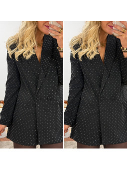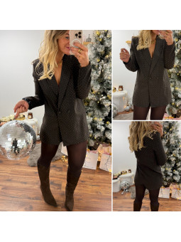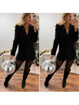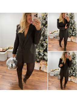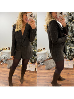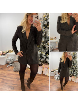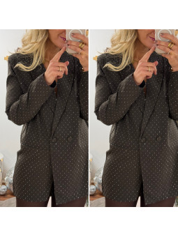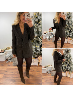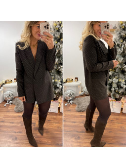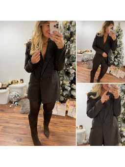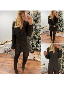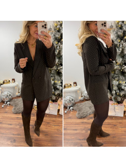 Blazer combi-short chocolat col V avec strass Le S équivaut au...