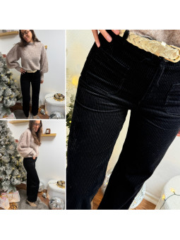 Pantalon en gros velours noir avec poches plaquées sur le...