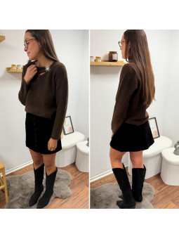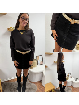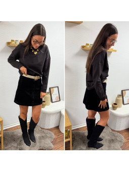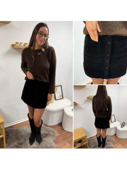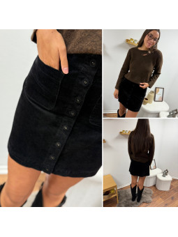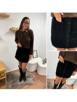 Jupe courte en velours noire avec boutons et poches carrées...