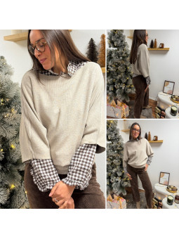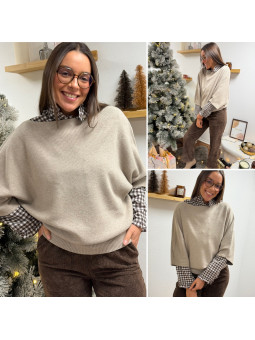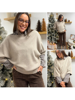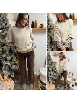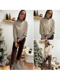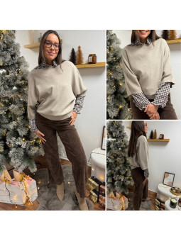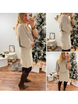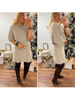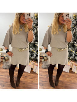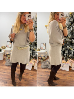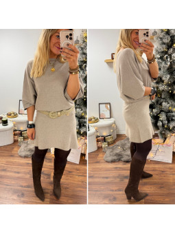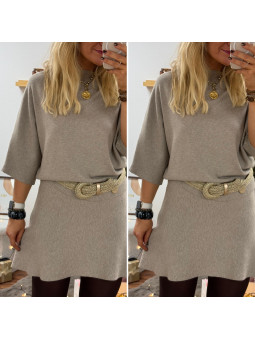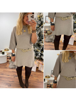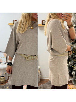 Ensemble avec jupe et pull à manches 3/4 en maille taupe Cet...