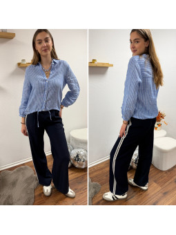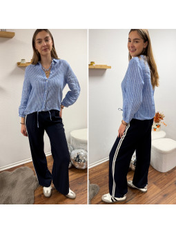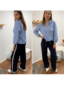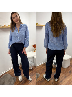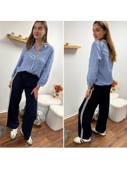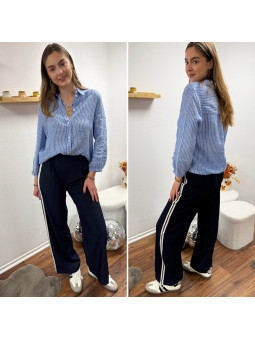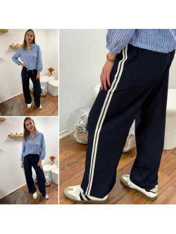 Pantalon fluide bleu marine avec bandes blanches sur le côté...
