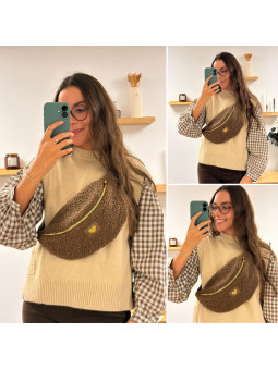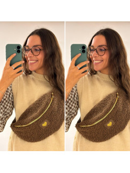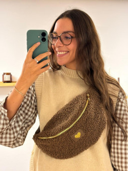 Sac banane moumoute marron avec petit coeur doré brodé 100%...