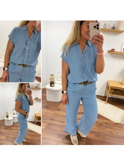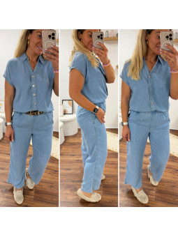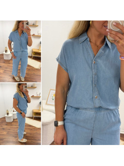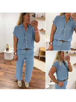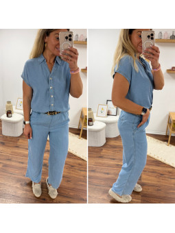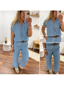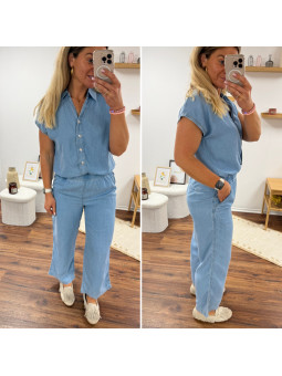 Combinaison pantalon en jean tencel élastiquée à la taille (du...