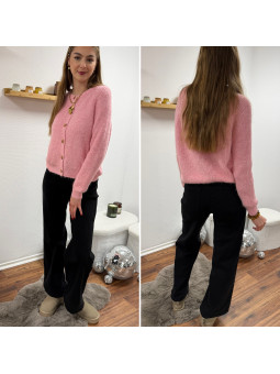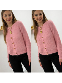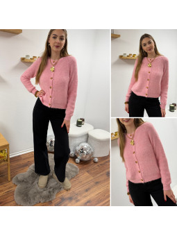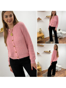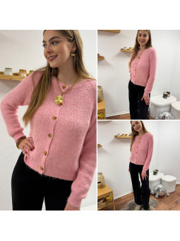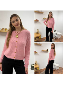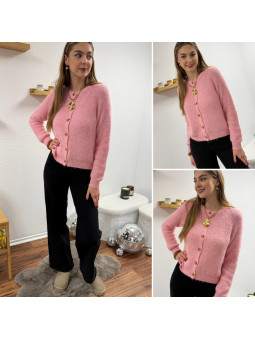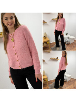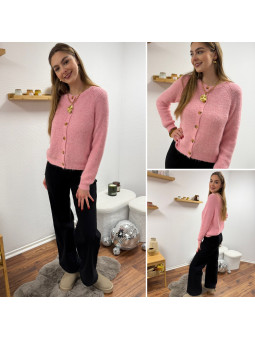 Gilet en maille rose avec boutons camels Le SM équivaut au...