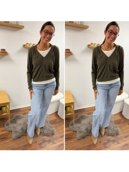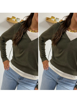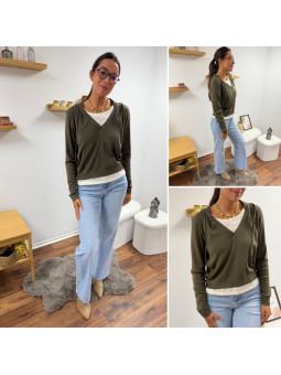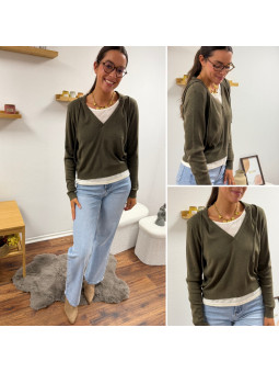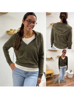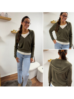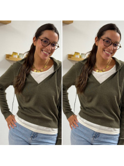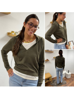 Pull léger à capuche kaki avec empiècements façon tee shirt...