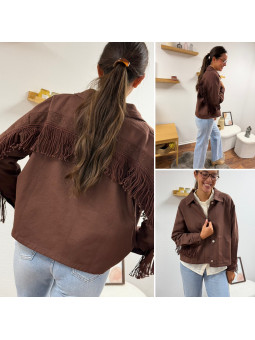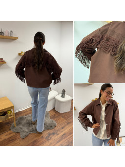 Veste à franges couleur chocolat Le SM équivaut au 36-38, le...
