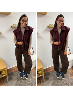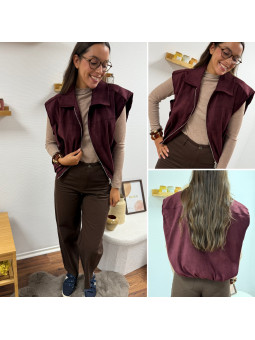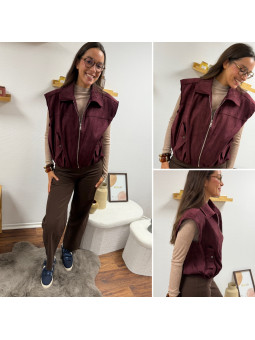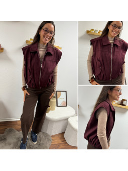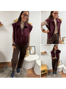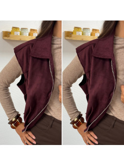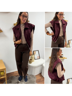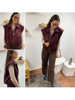 Veste sans manche en suédine froncée à la taille bordeaux 100%...