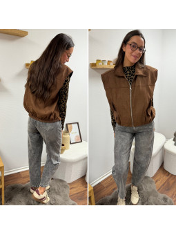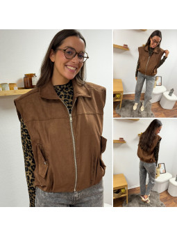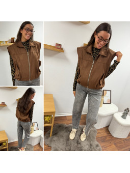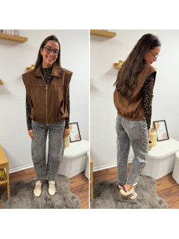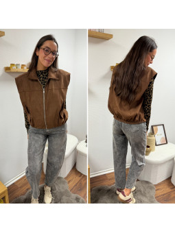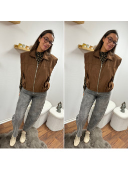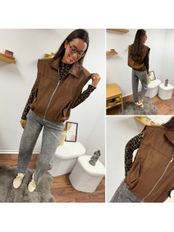 Veste sans manche en suédine froncée à la taille chocolat 100%...