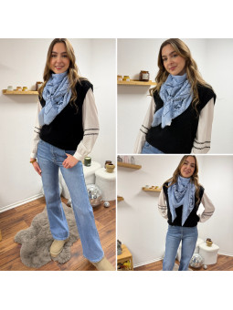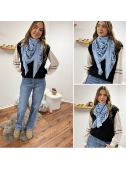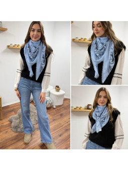 Étole légère façon bandana bleue ciel 80% viscose et 20% coton...
