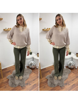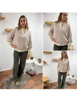 Pull loose manches courtes col V jaune pâle Cet article en TU...