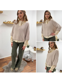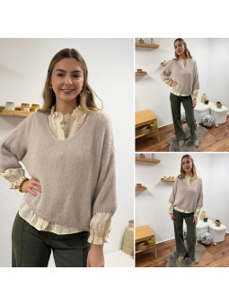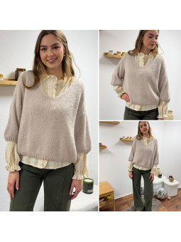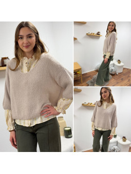 Pull loose manches courtes col V bleu jean Cet article en TU...
