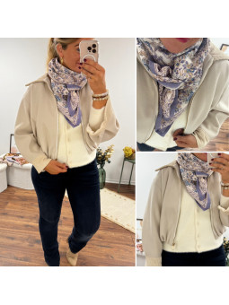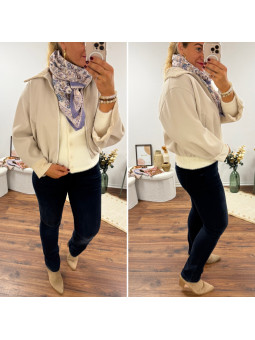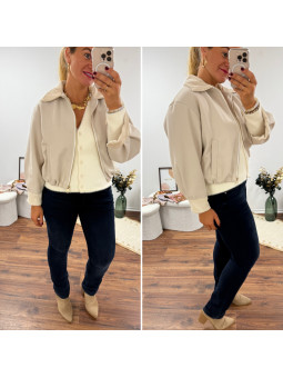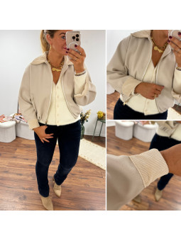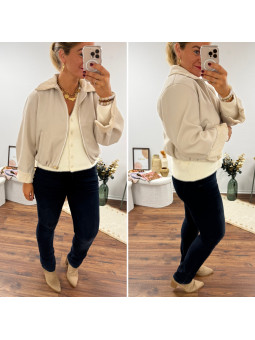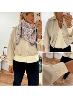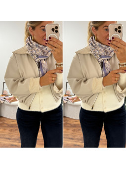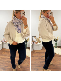 Veste courte beige froncée dans le bas avec col et poignets en...