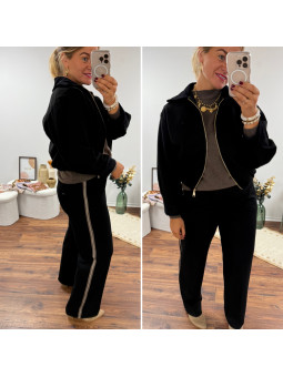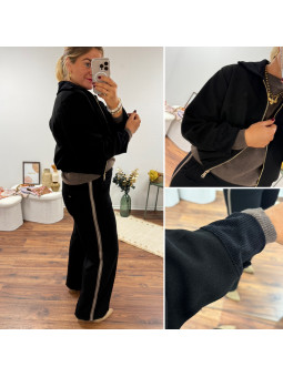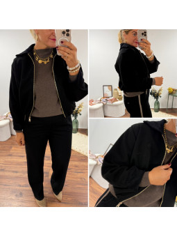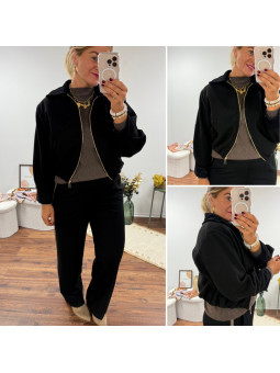 Veste courte noire froncée dans le bas avec col et poignets en...
