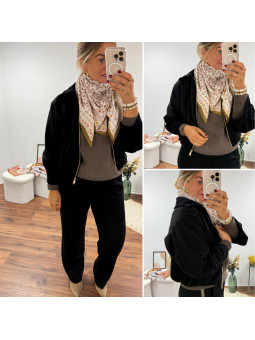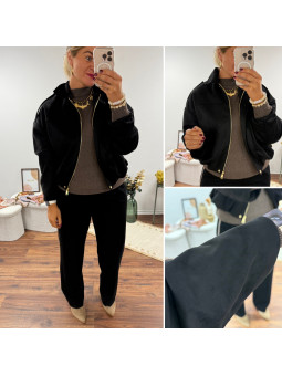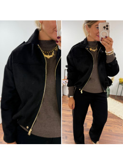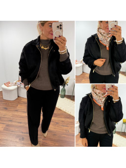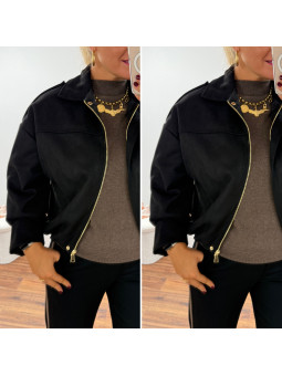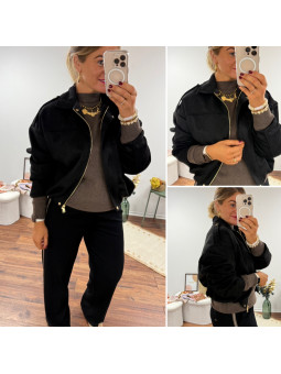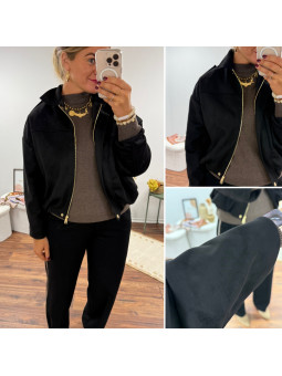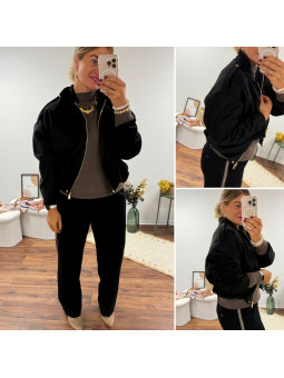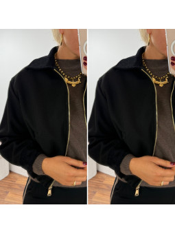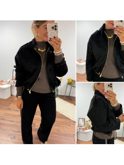 Veste simili cuir noire resserrée avec élastique dans le bas...