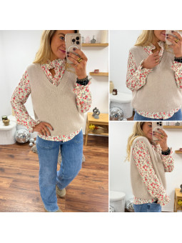 Pull beige clair sans manches col V en mohair Cet article en...
