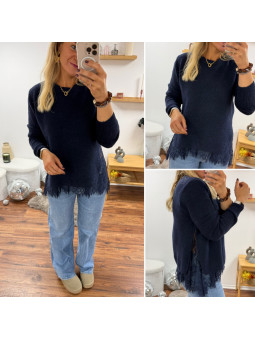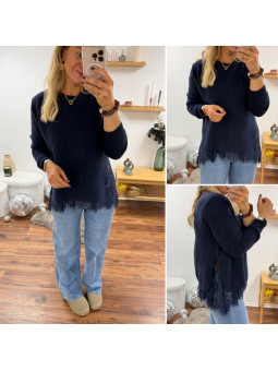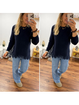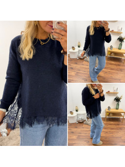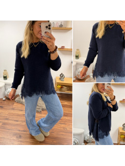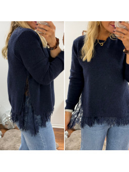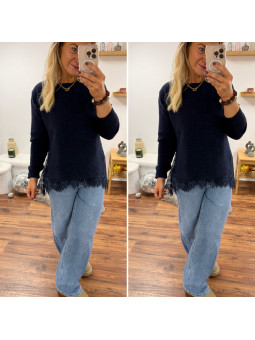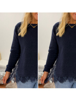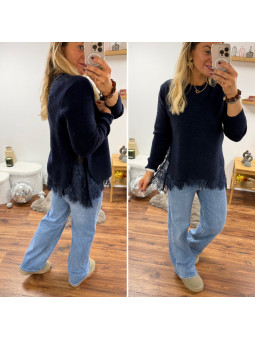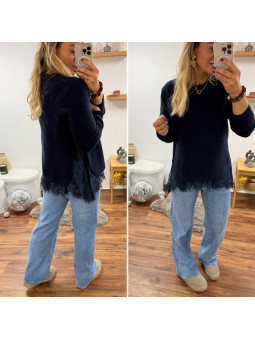 Pull bleu marine avec dentelle dans le bas et sur les côtés...