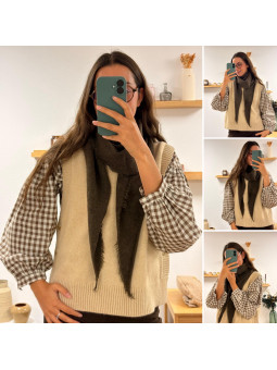 Grande étole triangle kaki toute douce 55.4% acrylique, 37.5%...
