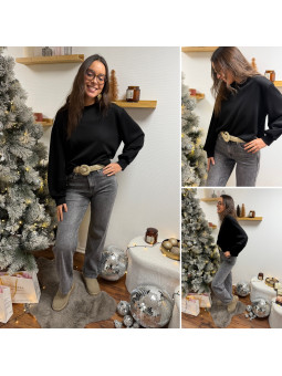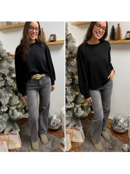 Sweat noir tout doux fluide avec couture sur les bras Cet...