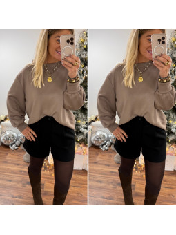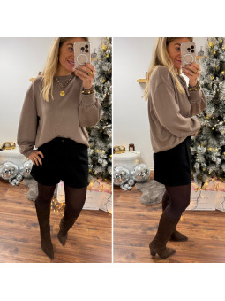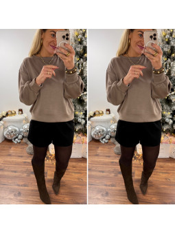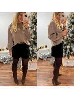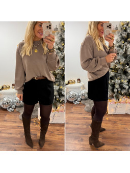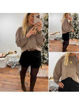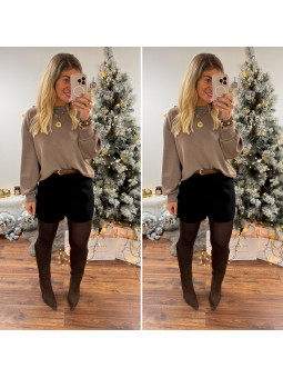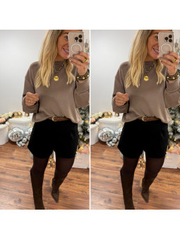 Short en velours chocolat avec sequins chocolats élastiqué à...