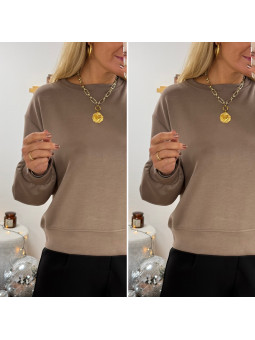Blouse col V soyeuse taupe Le S équivaut au 36 et le M au 38,...