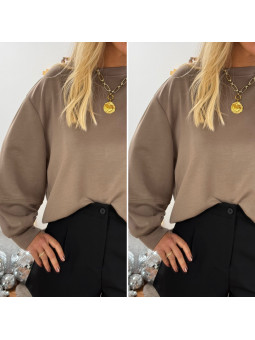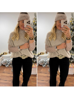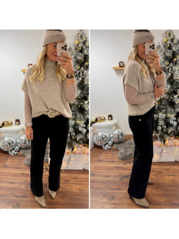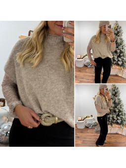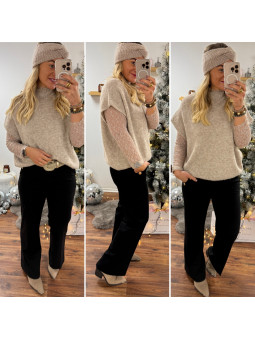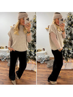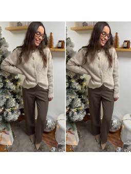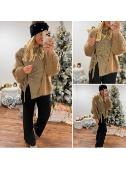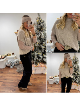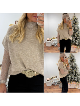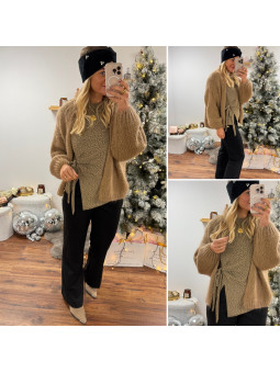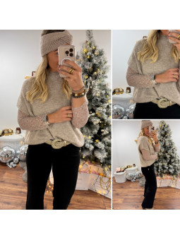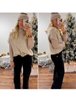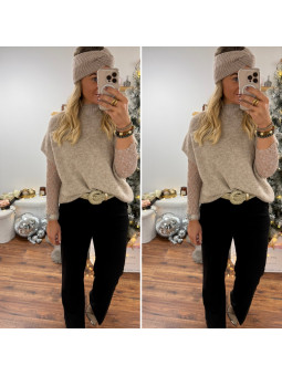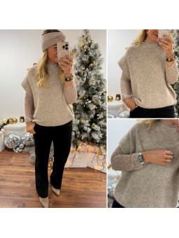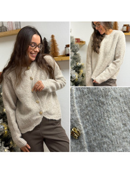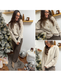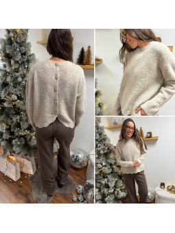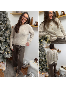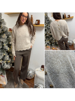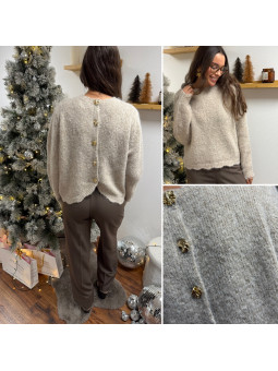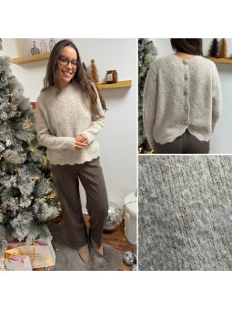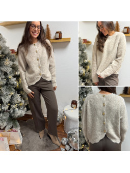 Pull avec boutons dans le dos ou gilet beige avec points de...
