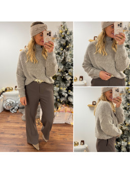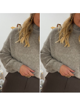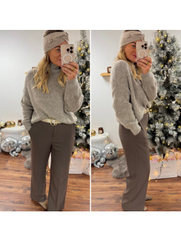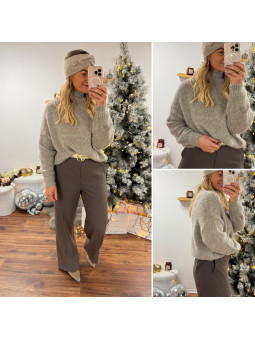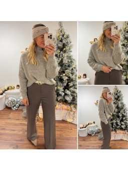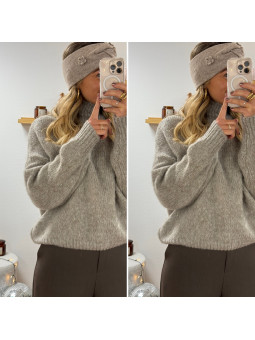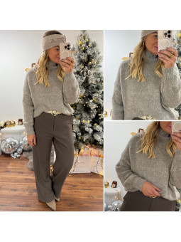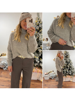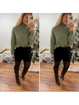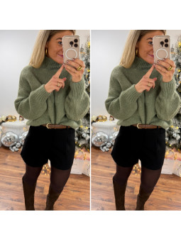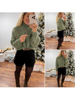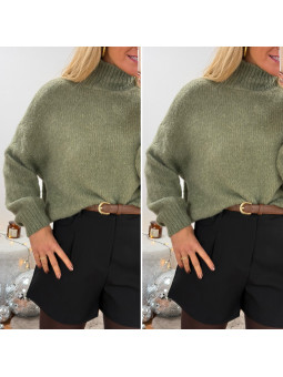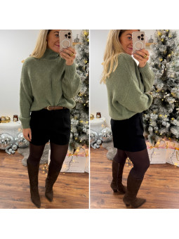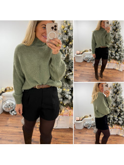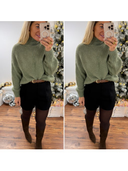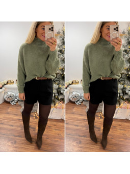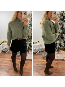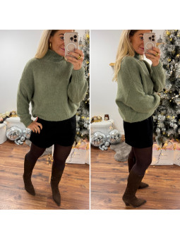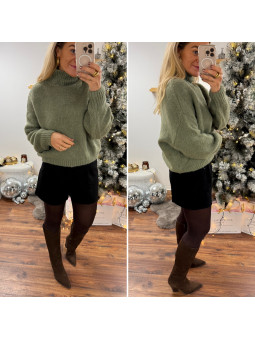 Pull kaki clair avec col montant/cheminée Cet article en TU...