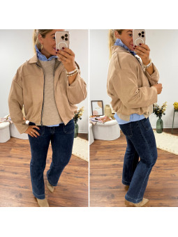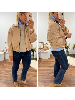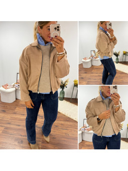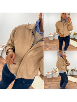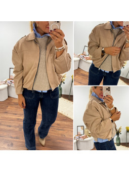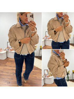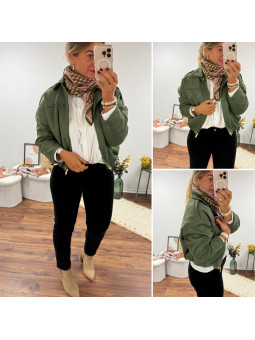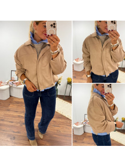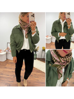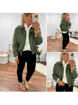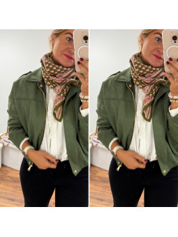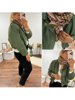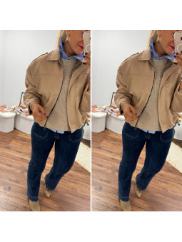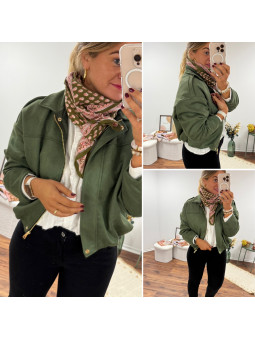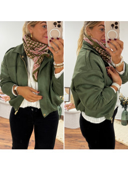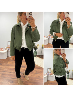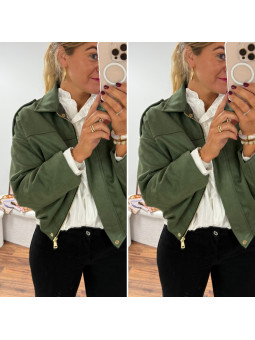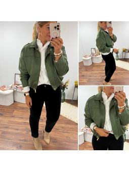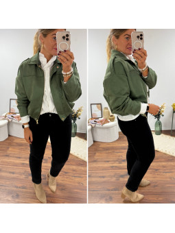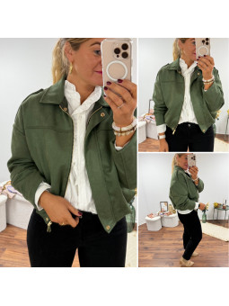Veste courte en suédine kaki froncée dans le bas Taille unique...