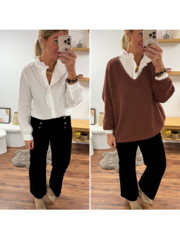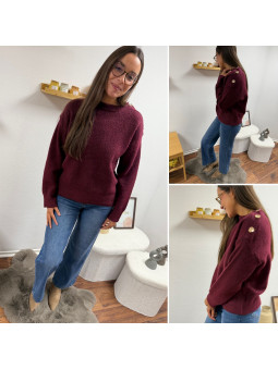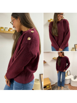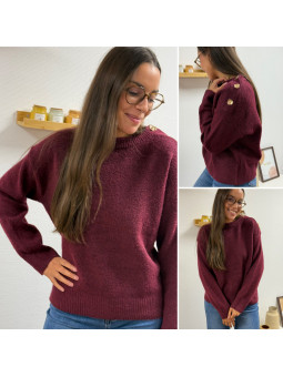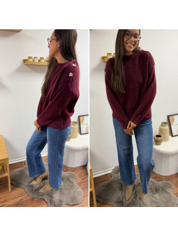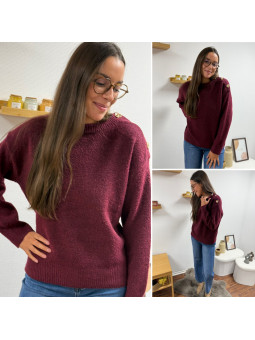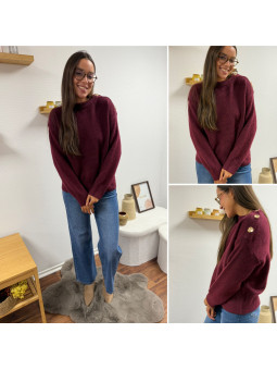 Pull bordeaux avec boutons dorés sur le col Cet article en TU...
