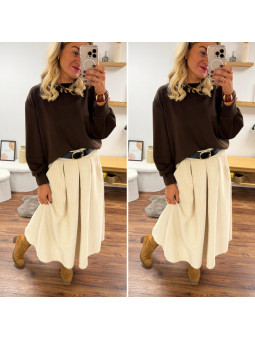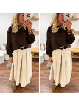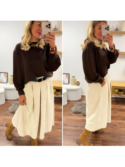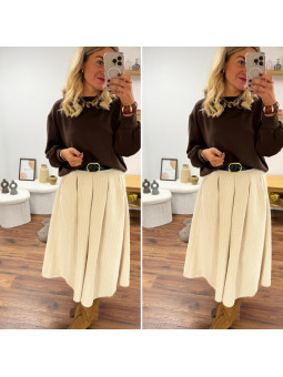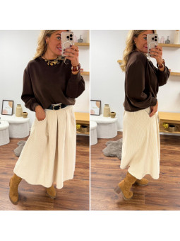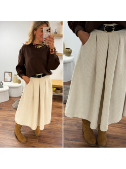 Jupe écru mi longue en velours avec ceinture en similicuir...