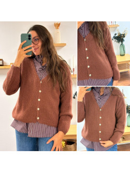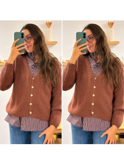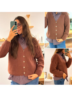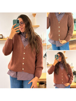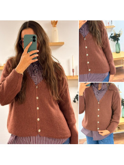 Gilet col V couleur bois de rose en mohair Cet article en TU...