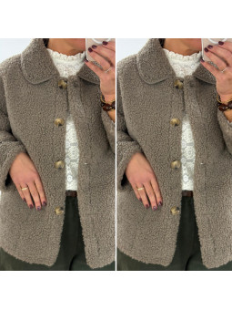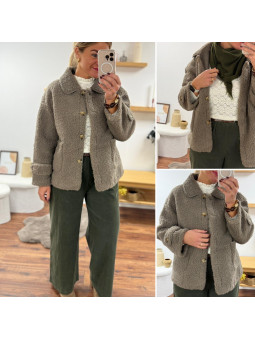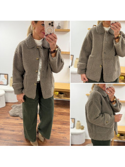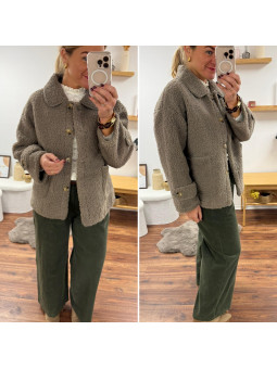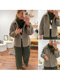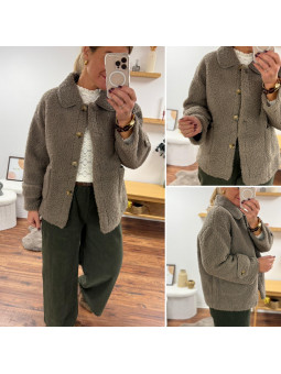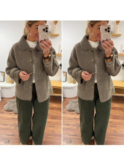 Veste sherpa bouclettes taupe foncé Le SM équivaut au 36-38,...