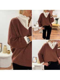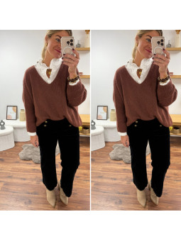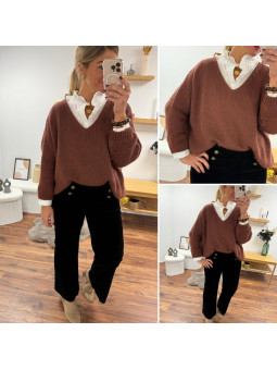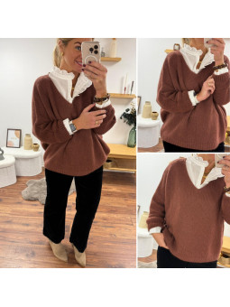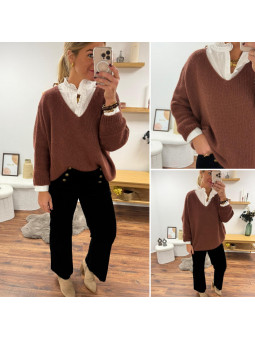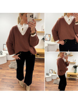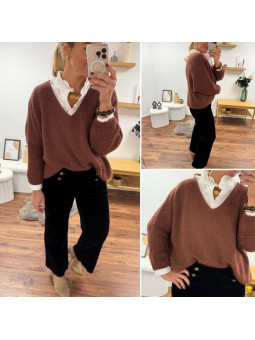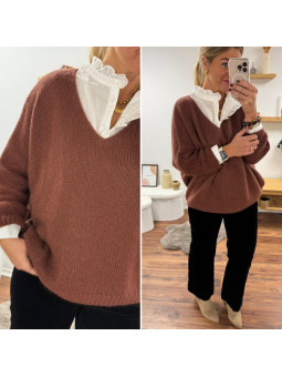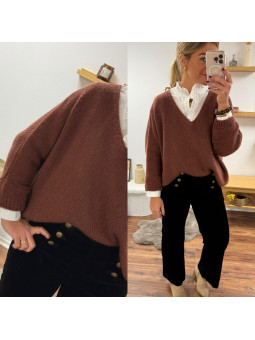 Pull couleur marron châtaigne manches chauves souris mi longue...